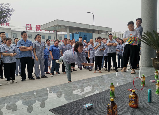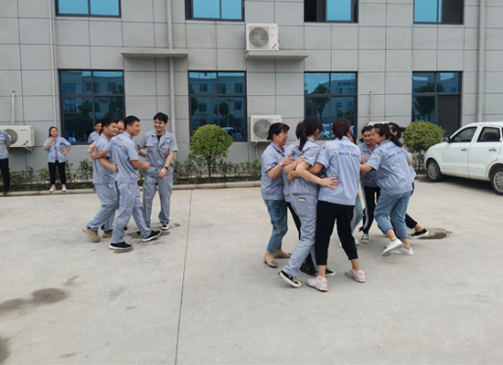 雨后清涼的空氣送走了多日的酷熱,4點全公司員工都放下工作,來到辦公樓前參加端午團建活動。活動分為四個環節:全員參與“愛的抱抱”、分隊參與“十人九足”、拔河比賽、套圈圈。